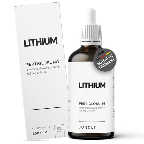 JUNALI® Lithium solution, 1 ml ready-to-use solution contains 0.5 mg lithium = 500 ppm, 100 ml solution of ultrapure water and pure lithium orotate (purity: > 98.5%) - made in Germany