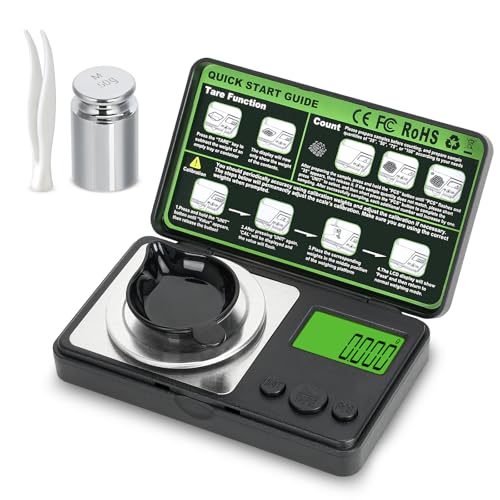 GRAM PRES Hög precision, 50 g/0,001 g digital minifickvåg, Mg-våg för vägning av pulver, smycken, medicin, ädelstenar, påfyllning, guldvåg med limevikt, klämma och bricka