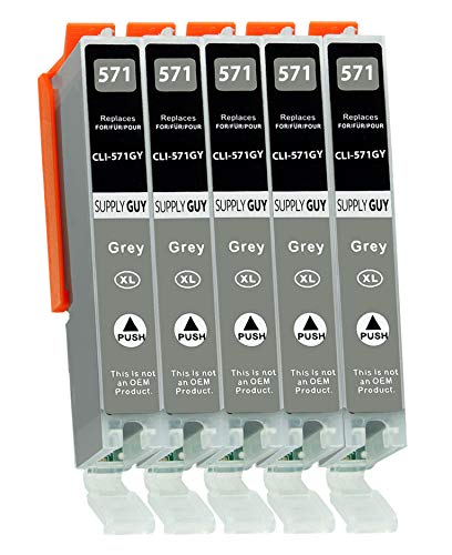 Supply Guy 5 XL bläckpatroner met chip kompatibel med Canon CLI-571 Grå för Pixma MG7700 MG7750 MG7751 MG7752 MG7753 TS8000 TS8050 TS8051 TS8052 TS8053 TS9000 TS9050 TS9055