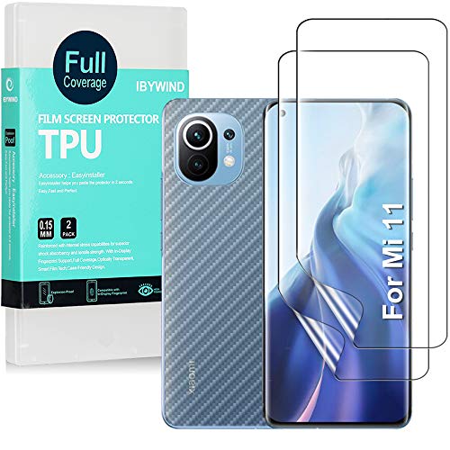 Ibywind Screen Protector for Xiaomi Mi 11 5G / Mi 11 Pro 5G, [Pack of 2], [Camera Lens Cover(Metal Material)] [Back Carbon Fiber Film Cover] [Image Fingerprint Support][Bubble Free]