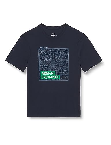 Armani Exchange Herr regular fit, Pima Cotton, Milan Map, tryckt logo box t-shirt, Navy Mi, XS