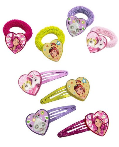 Mia and Me 118066+118067 – Set: fläthållare + hårklämmor – 4 motiv vardera – på bakkort, 5 x 15 cm