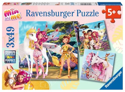 Ravensburger - Djur Elver och enhörningar land-3 x 49 bitar Mia and Me pussel för barn från 5 år, 05701, vit