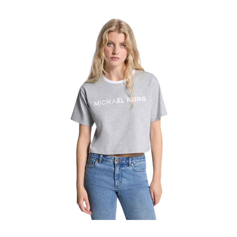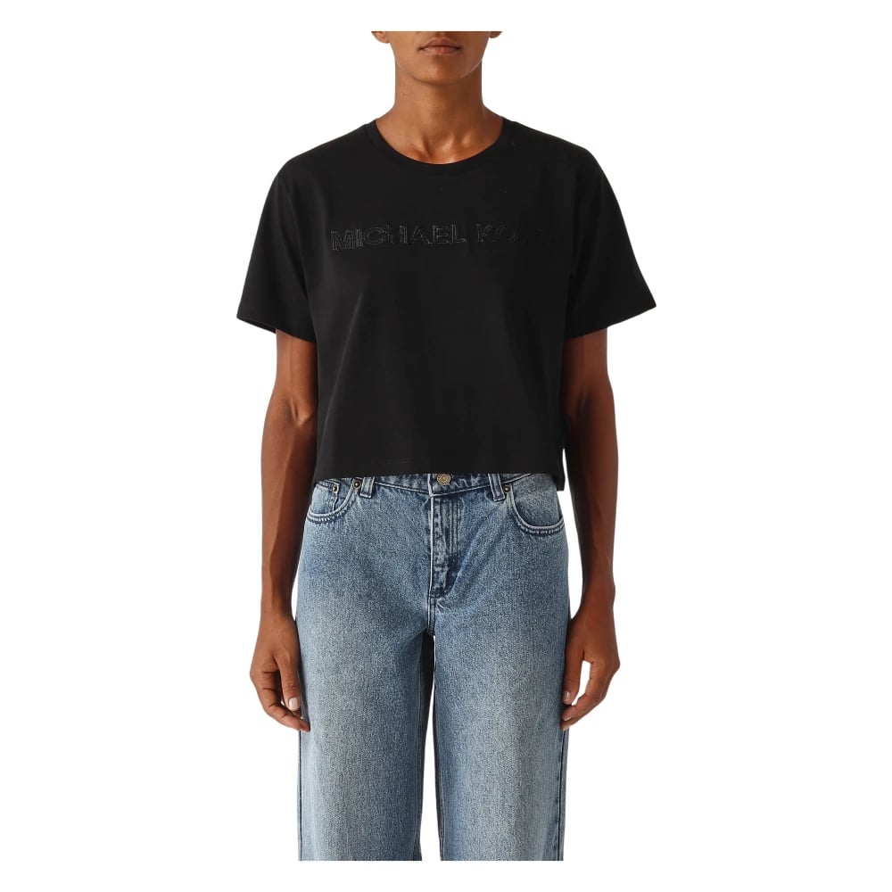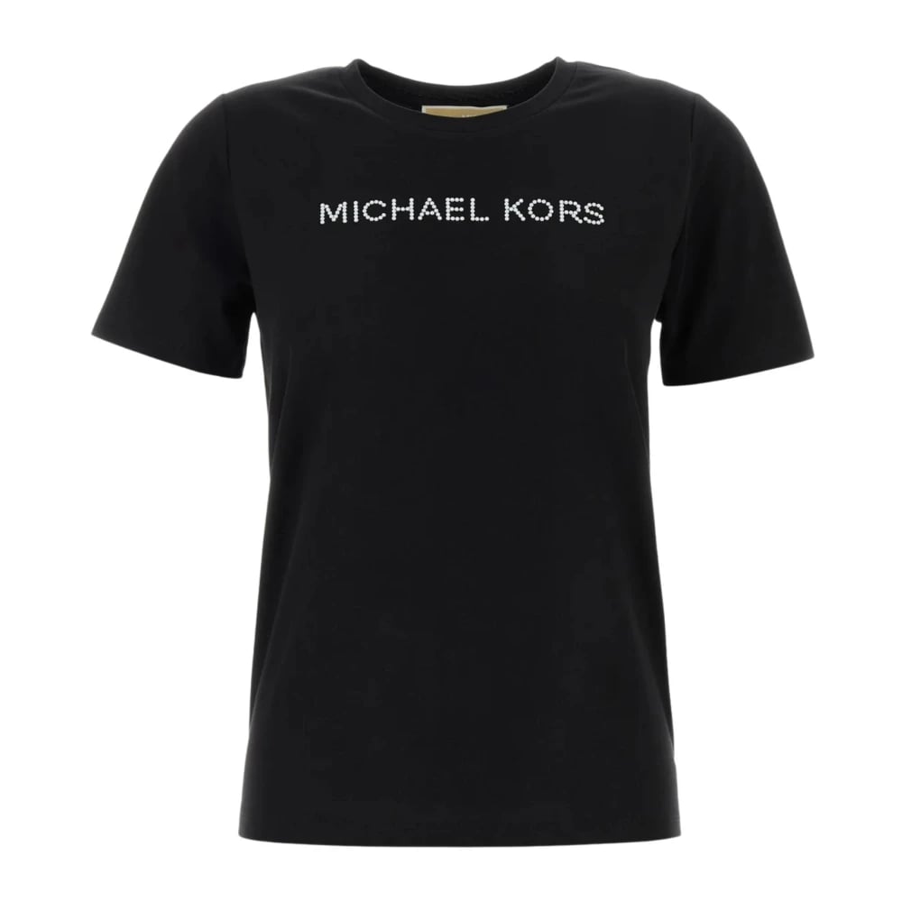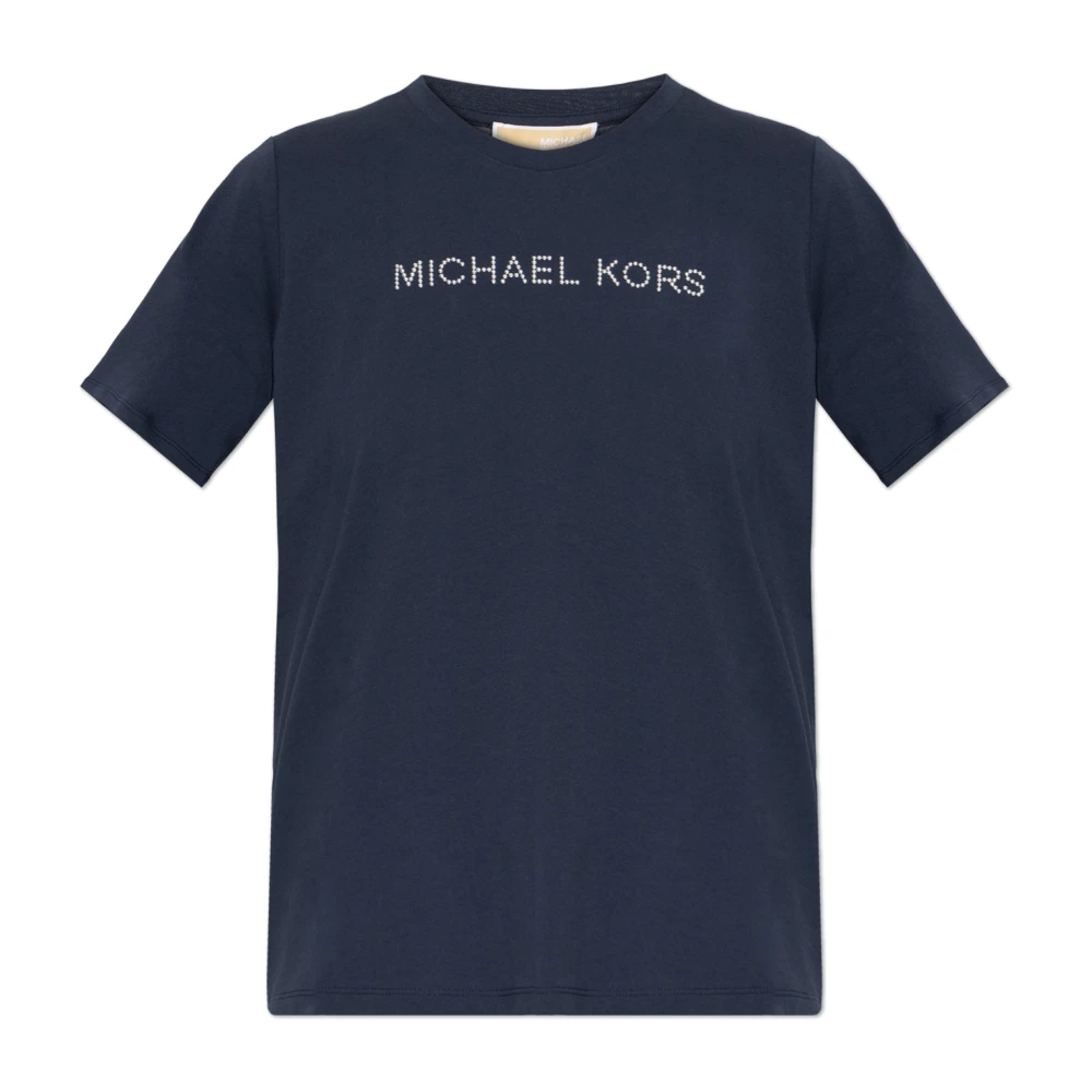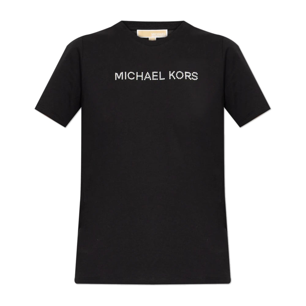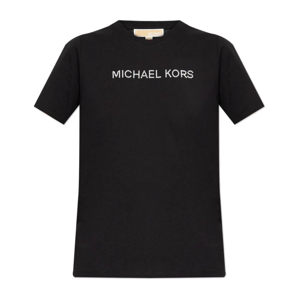 Michael Kors, Toppar , Dam, S, Bomull, T-shirt med logotypapplikation, kort modell