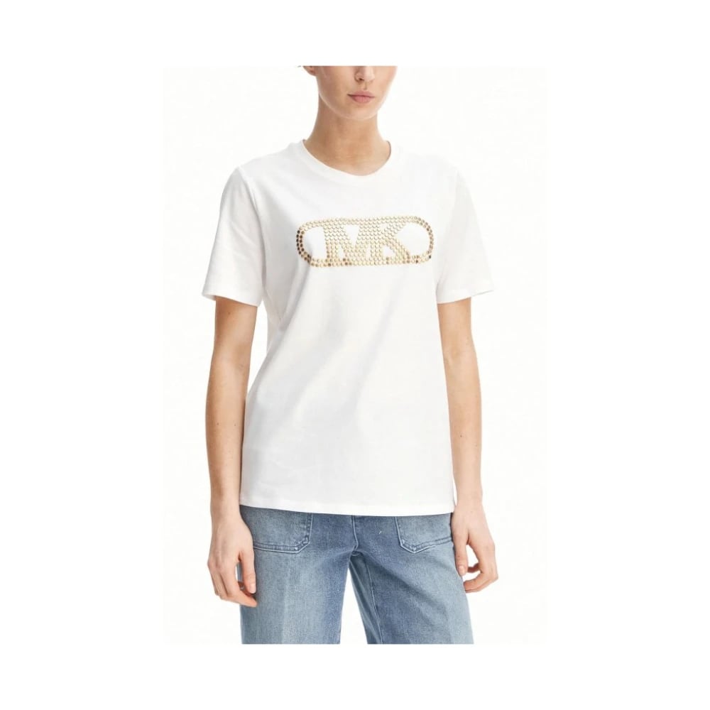 Michael Kors, Toppar , Dam, M, Bomull, T-shirt med logotypapplikation, kort modell