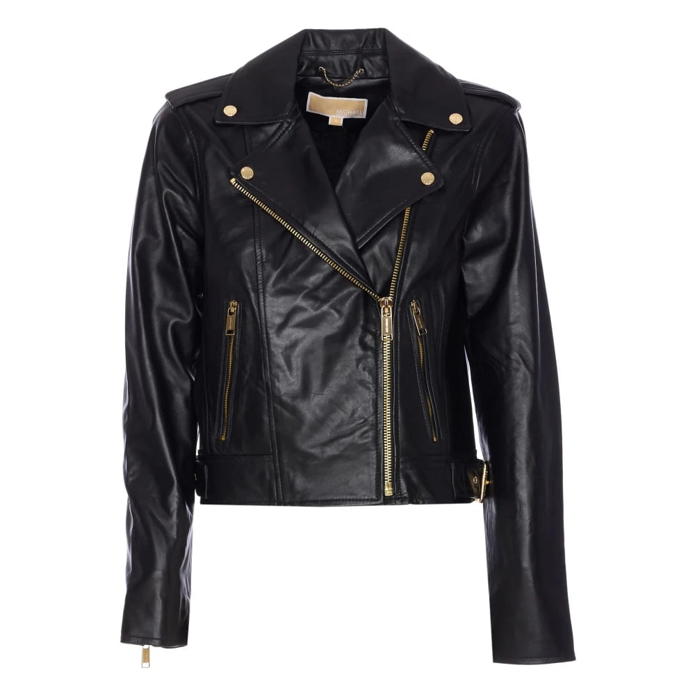Michael Kors, Jackor , Dam, S, Läder, Svart Läder Moto Jacka