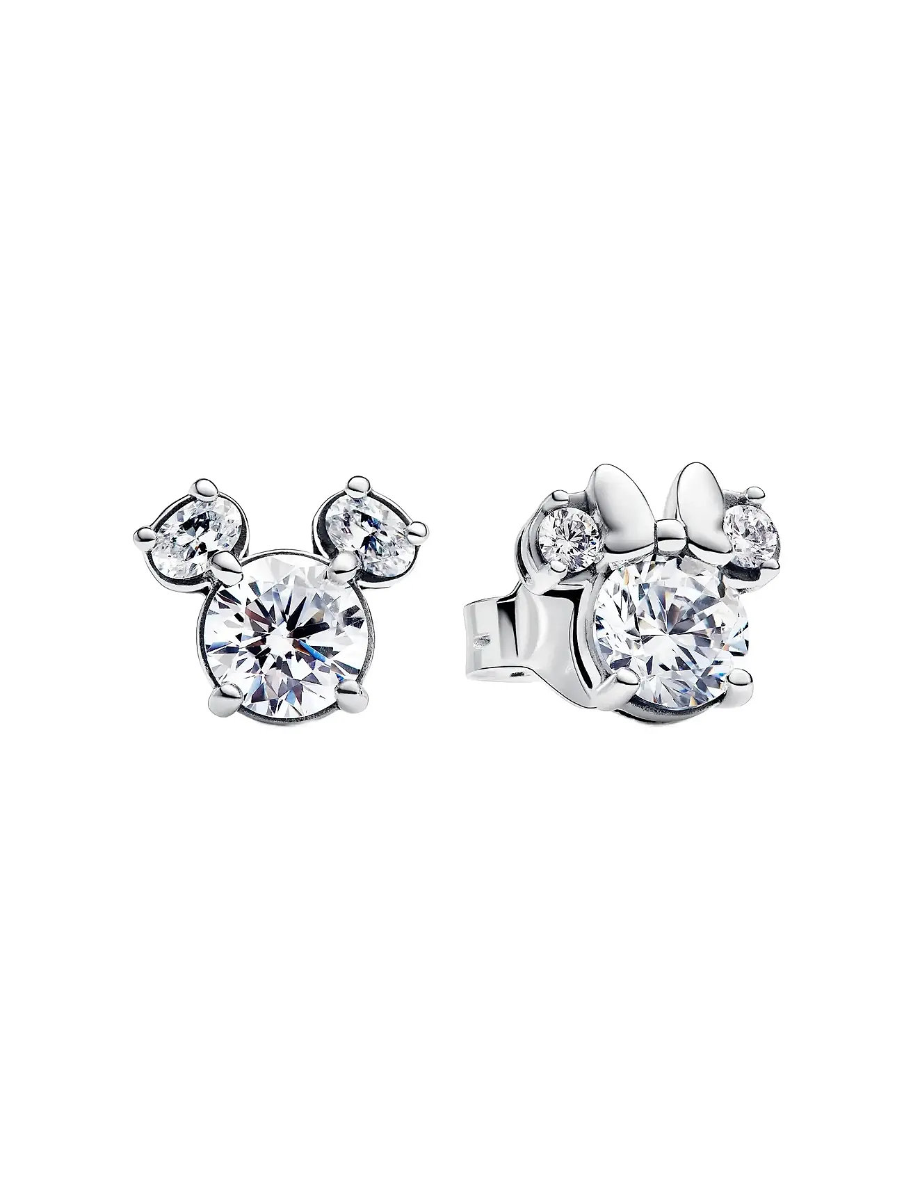 Pandora Disney Mickey And Minnie Silhouette Sterling Silver Stud Earrings With Clear Cubic Zirconia Silver