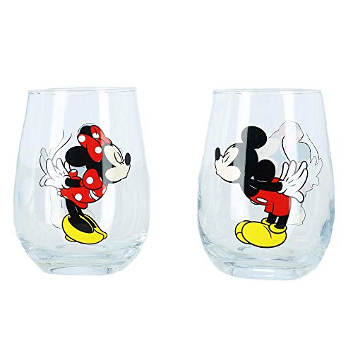 Disney Kissing Mickey and Minnie Mouse Couples Stemless Glasses, Set of 2