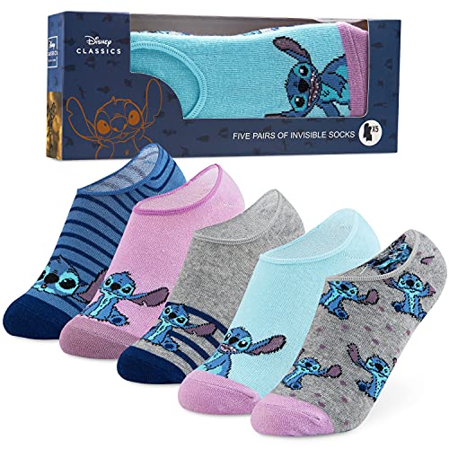 Disney Stitch Socks Women and Teenagers Ankle Socks Inga show Socks Women Minnie Mickey Marie Multi Pack 5 Par En storlek 4-7 Trainer Socks Stitch Gifts, En storlek, Blåstygn