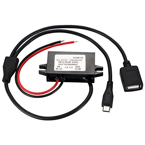 Greluma 1 Styck Vattentät DC-DC 12V till 5V 3A-omvandlare med Micro USB-port, Micro USB Step Down-modul Strömadapter kompatibel med Raspberry Pi 4, mobiltelefon, bil