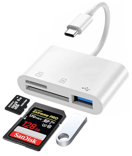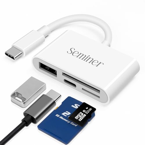 USB C till Micro SD TF Minneskortläsare, Seminer 3 i 1 USB Kamera Kortläsar Adapter Kompatibel med Pad Pro, XPS, ChromeBook, Galaxy S10/S9 och fler USB C Enheter (Vit)