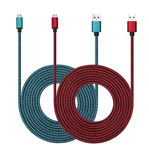 Micro USB-kabel 3 m med 3A snabbladdning, 2-pack ultrahållbara 3 m nylonflätade laddningssladdar för Galaxy S7/S6/J8/J7 Note 5, Kindle, LG, PS4, kamera, Xbox One och mer (Röd+Blå)