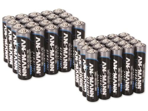 ANSMANN Alkaline batteriset 20 st AA söt LR6 + 20 st AAA Micro LR03 kraftfull reservbatteri 1,5 V engångsbatteri för ficklampa, väckarklocka, fjärrkontroll, tangentbord, väggklocka leksaker