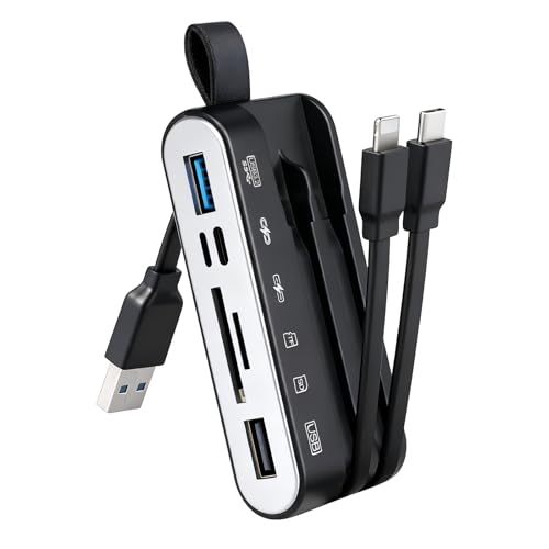 Rocketek USB C USB3.0 multikortläsare, SD/TF/CF/Micro SD/XD/MS 7 i 1 minneskortläsare/adapter/hubb för SD SDXC SDHC CF CFI TF Micro SD Micro SDXC Micro SDHC MS MMC UHS-I-kort, för Windows/Mac/Android
