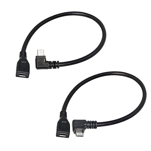RIIEYOCA 90 graders mikro-USB-förlängningskabel - Micro USB hane till hona vänster och höger vinkel datasynkronisering och laddningskabel 25 cm/10 tum (1 par)