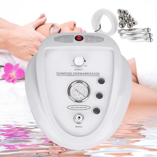 QUIRUMED Microdermabrasion Utrustning, Ansiktsvård, banbrytande diamantteknologi, 3 handtag och 9 ringar, Enkel, Smärtfri och icke-invasiv teknik, Tidskontroll, 220V-20W