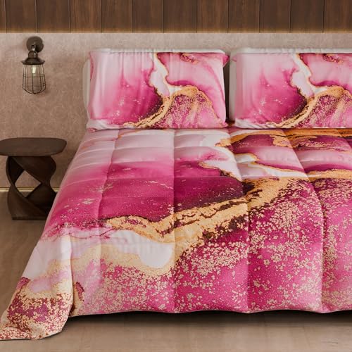 PETTI Hantverkare Italienska - täcke, Vinterjacka, Vintertäcke, Square och halv Double Face Enfärgad och Digital Printing Marble Rosa, 100% Microfiber, Tillverkad i Italien