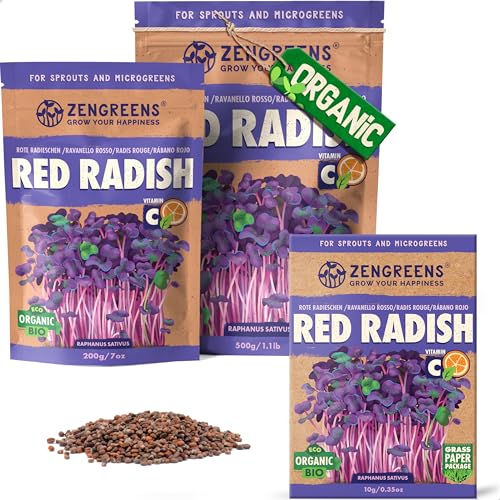 ZenGreens® - EKO Röda Rädisor Frön - Välj mellan 10, 200g och 500g - Röda Rädisor Frön med en grobarhet på över 97 procent - Groddar av Röda Rädisor Frön - Microgreens