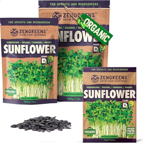 ZenGreens® - EKO Solrosor Frön - Välj mellan 10, 200g och 500g - Solrosor Frön med en grobarhet på över 97 procent - Groddar av Solrosor Frön - Microgreens