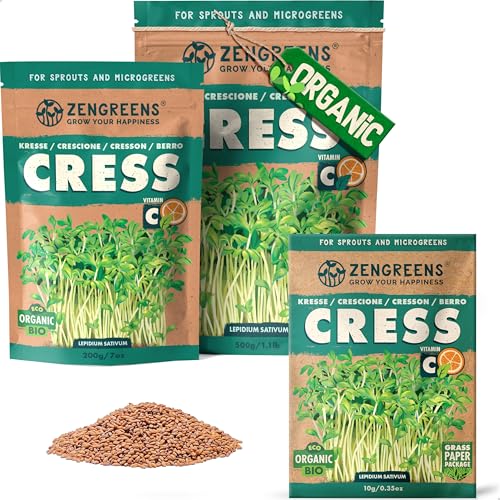 ZenGreens® - EKO Krasse Frön - Välj mellan 10, 200g och 500g - Krasse Frön med en grobarhet på över 97 procent - Groddar av Krasse Frön - Microgreens