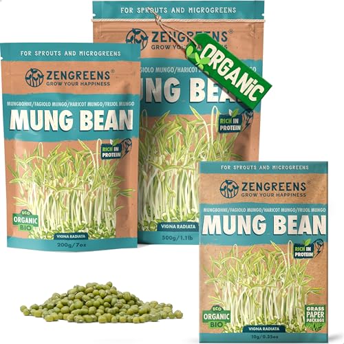 ZenGreens® - EKO Mungbönor Frön - Välj mellan 10, 200g och 500g - Mungbönor Frön med en grobarhet på över 97 procent - Groddar av Mungbönor Frön - Microgreens