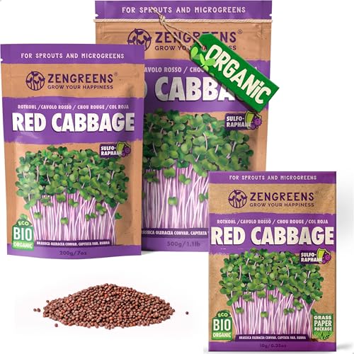 ZenGreens® - EKO Rödkål Frön - Välj mellan 10, 200g och 500g - Rödkål Frön med en grobarhet på över 97 procent - Groddar av Rödkål Frön - Microgreens