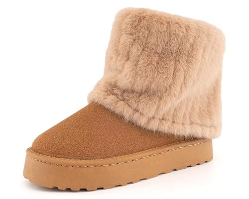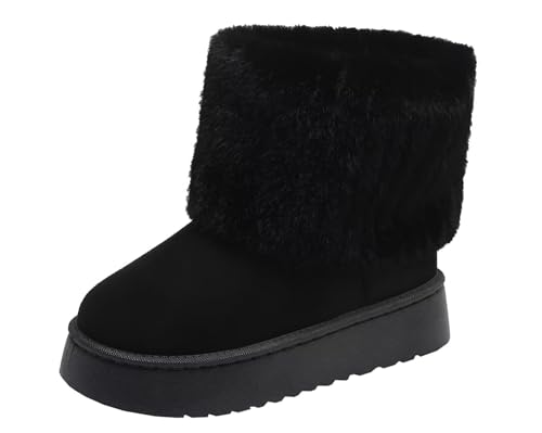 Kvinnor Faux Fur Mid Calf Snow Boots Varma Mocka Vinterstövlar Med Lurvigt Foder Och Halkfri Sula
