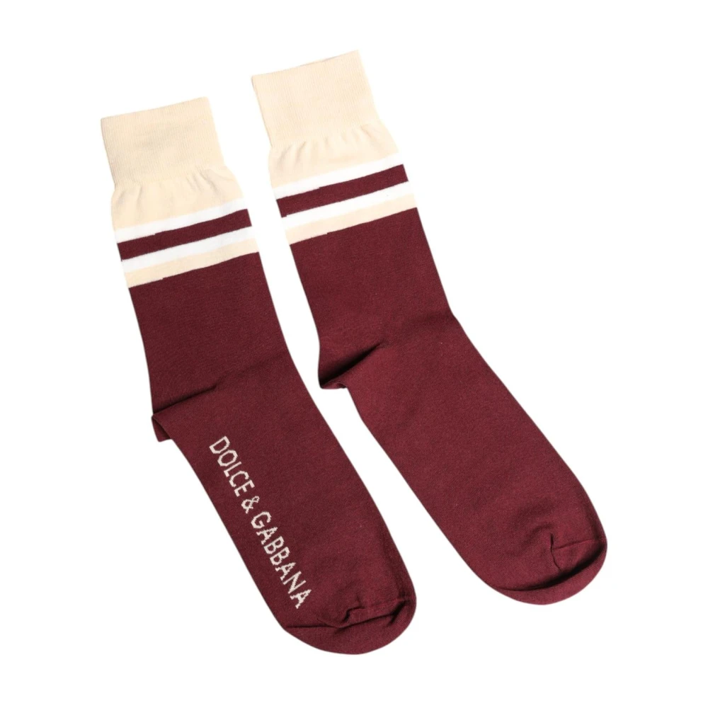 Dolce & Gabbana, Underkläder , Herr, ONE Size, Bomull, Logo Print Mid Calf Socks Burgundy
