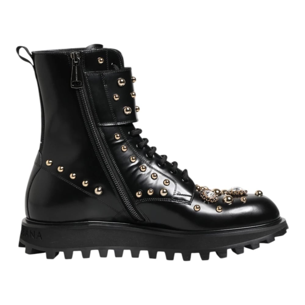 Dolce & Gabbana, Skor , Herr, 43 EU, Läder, Studded Lace-Up Läder Mid Calf Stövlar