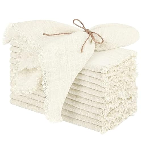 Yaoliucp 12 st linneservetter, 43 x 45 cm tyg fyrkantiga rustika servetter med lugg, mjuka tvättbara återanvändbara för bröllopsfest middagsbord, beige tyg