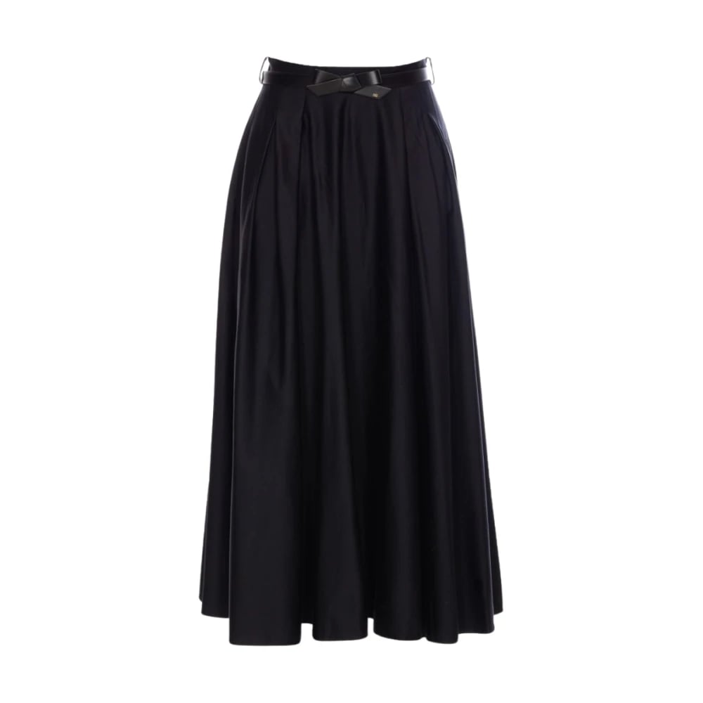 Elisabetta Franchi, Kjolar , Dam, M, Bomull, Svart Satin Midikjol med Rosett