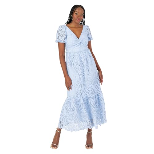 Maya Deluxe Dam midiklänning dam V-hals kort puffärmar vridning framsida spets bunden botten hemline A-linje bröllop gäst tillfälle dam, Cornflower blå, 42