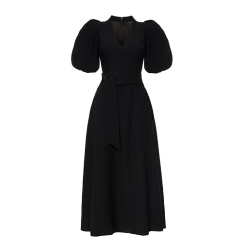 Swing Fashion svart lätt utsvängd midiklänning med puffärmar Icon | Storlek 36 | Perfekt för bal, fest, bröllop, svart, 36