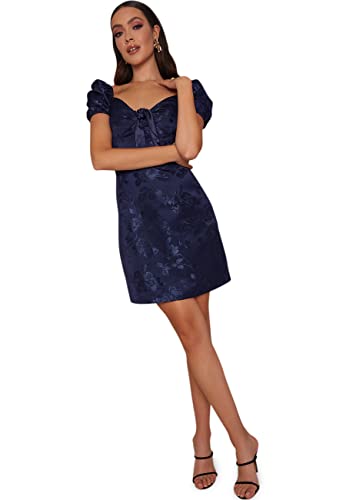 Chi Chi London puffärm jacquard bodycon midi-klänning i marinblå cocktail, Marinblått Xsp, 40 SE