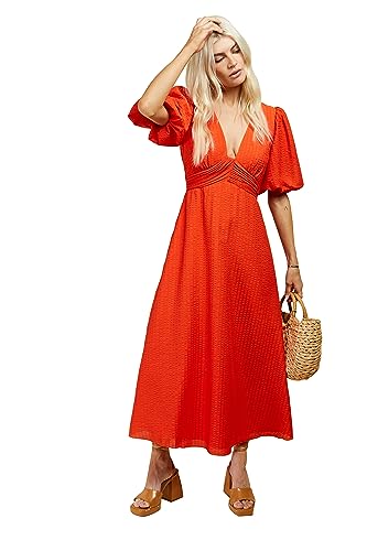 Orange texturerad puffärm midi-klänning, Orange, 36 SE