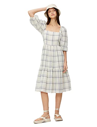 Koton dam bomull gimped puffärm midiklänning, Navy Check (7c0), 36
