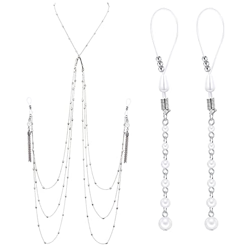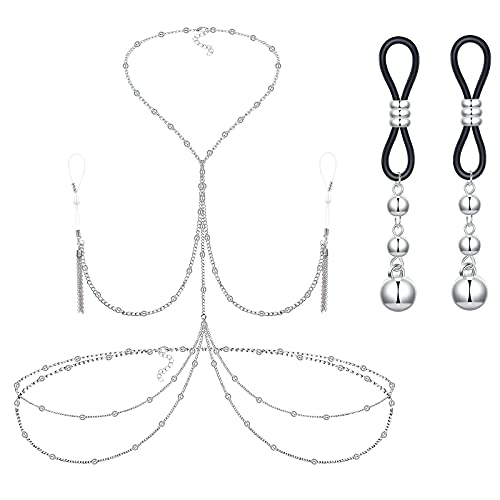 Longita Kroppskedjor med hängen för bröstvårtorna, midjekedja, långt bikinismycke, kräver inte bröstvårtspiercing, halsband för kvinnor, bröstvårteringar med halsband, justerbar, rostfritt stål