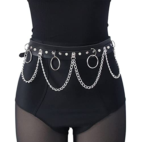 Damer punk, läder kroppskedja, sexig justerbar midjekedja, svart benstrumpeband, skärp, gotisk shellingkedja. kroppstillbehör för kvinnor, En Storlek, Läder