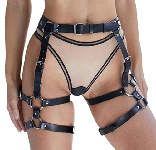 Damer punk läder kroppskedja sexig justerbar midjekedja svart ben strumpband bälte gotisk klippning kedja kroppstillbehör för kvinnor, En Storlek, Läder, PU-läder