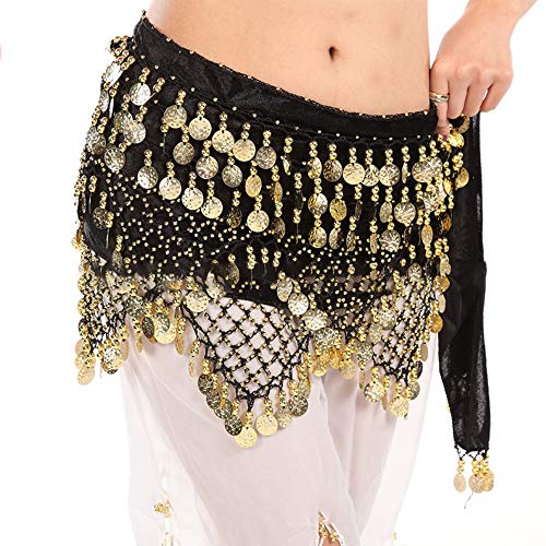 Integrity.1 Magdans höfthalsduk, magdansbälte, magdans midjekedja, indisk dansbälte, svart guld mynt magdans kjol, dansare dekoration, för show, fest, firande, studie, Schwarz, en storlek