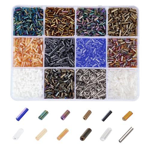 PandaHall 4806 stycken 12 stilar glas signalhorn pärlor metalliska långa rocailler rörpärlor pysselpärlor lösa avståndspärlor för örhängen armband halsband midjekedja smyckestillverkning