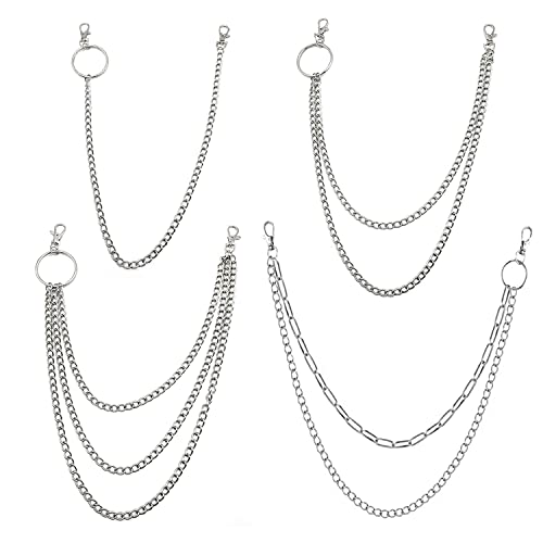 PFLYPF 4 par jeanskedjor, hiphop-punk-stil, mode, metallbyxor, kedja, midjekedja, mode flerskikts jeanskedja, lämplig för jeans, midjedekoration, väskdekoration, Metall