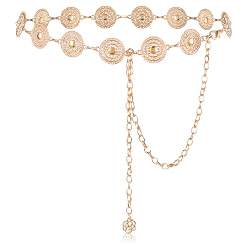 GIEEU Guld concho-kedjebälte, justerbar boho midjekedja, landskonsertdräkt för kvinnor, ålder 18-45, intresserad av mode och tillbehör i västerländsk stil