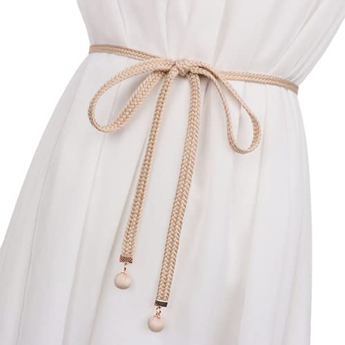 CHENGZI Dammode midjekedja rep flätat klänningsbälte för damer, BEIgE, Belt Width : 1 cm , Belt length : 150 cm