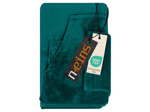 npluseins Coral Fleece gosig filt barn – originalet med ärmar och midjeväska 1448,2043, 90 x 150 cm, petrol
