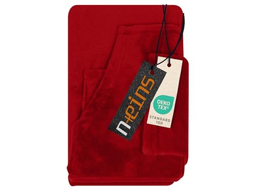 npluseins Coral Fleece gosig filt barn – originalet med ärmar och midjeväska 1448,2043, 90 x 150 cm, bordeaux