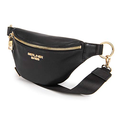 Berliner Bags Premium midjeväska Mona Gold Fanny Pack läder axelväska kvinnor män svart
