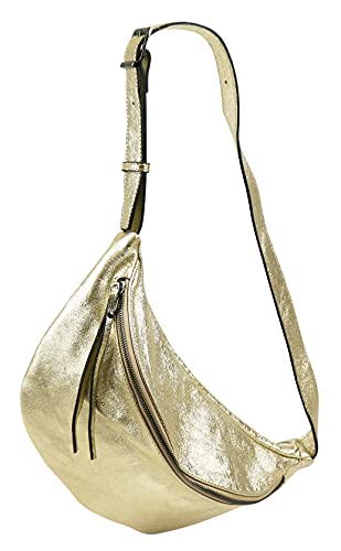 SH Leder ® Äkta läder höftväska kvinnor män unisex midjeväska för festival resa midjeväska medium crossbody väska kvinnor läderväska 32 x 17 cm Marie G528, Guld, M, Mode midjeväska