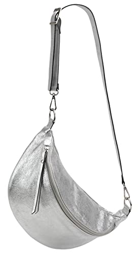 SH läder äkta läder kvinnor unisex bröstficka för festival resor medelstor midjeväska crossbody bag justerbar axelrem kvinnor läderväska 37 x 21 cm Greta G747, silver, Gross, midjeväska