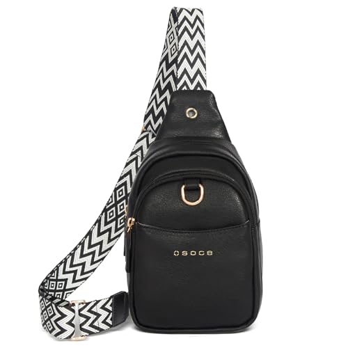 OSOCE Stöldskydd crossbody väska för kvinnor, axelväska för kvinnor med justerbar gitarrrem, midjeväska bröstväska för resor, Svart, Small, Axelväska för kvinnor vegan läder midjeväska crossbody